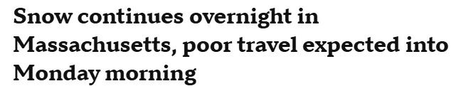 一场暴风雪于周日夜间至周一早晨侵袭麻萨诸塞州,影响范围广泛。