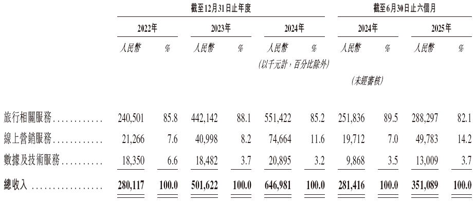 活力集团的收入主要来自旅行相关服务(包括交通票务、企业差旅管理、网约车、住宿预订及其他旅行相关服务)、在线营销服务、数据及技术服务。