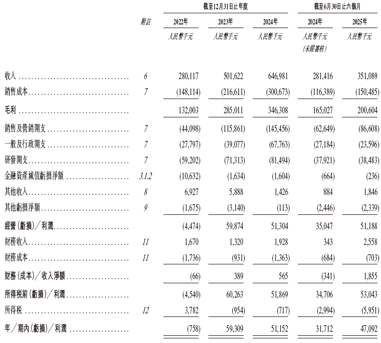 财务数据显示,在过去的2022年、2023年、2024年和2025年前六个月,活力集团的营业收入分别为人民币2.80亿、5.02亿、6.47亿和3.51亿元,相应的净利润分别为人民币-75.8万、5,930.9万、5,115.2万和4,709.2万元。