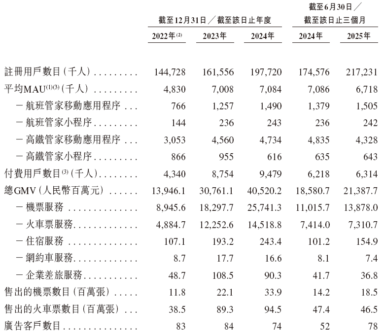 活力集团,作为中国知名的综合出行平台,通过旗舰应用「航班管家」、「高铁管家」为旅客相关服务,涵盖用户旅程的所有主要方面,包括计划及预订乃至实时旅行信息更新及旅行后支持,提供的一系列配套服务包括值机选座、列车选座、航班延误查询、机场信息导航及酒店预订等。截至2025年630日,活力集团的服务遍及逾220个国家和地区逾5,200个机场,包括逾3,500个国内火车站及为逾130万家酒店提供预订选择。