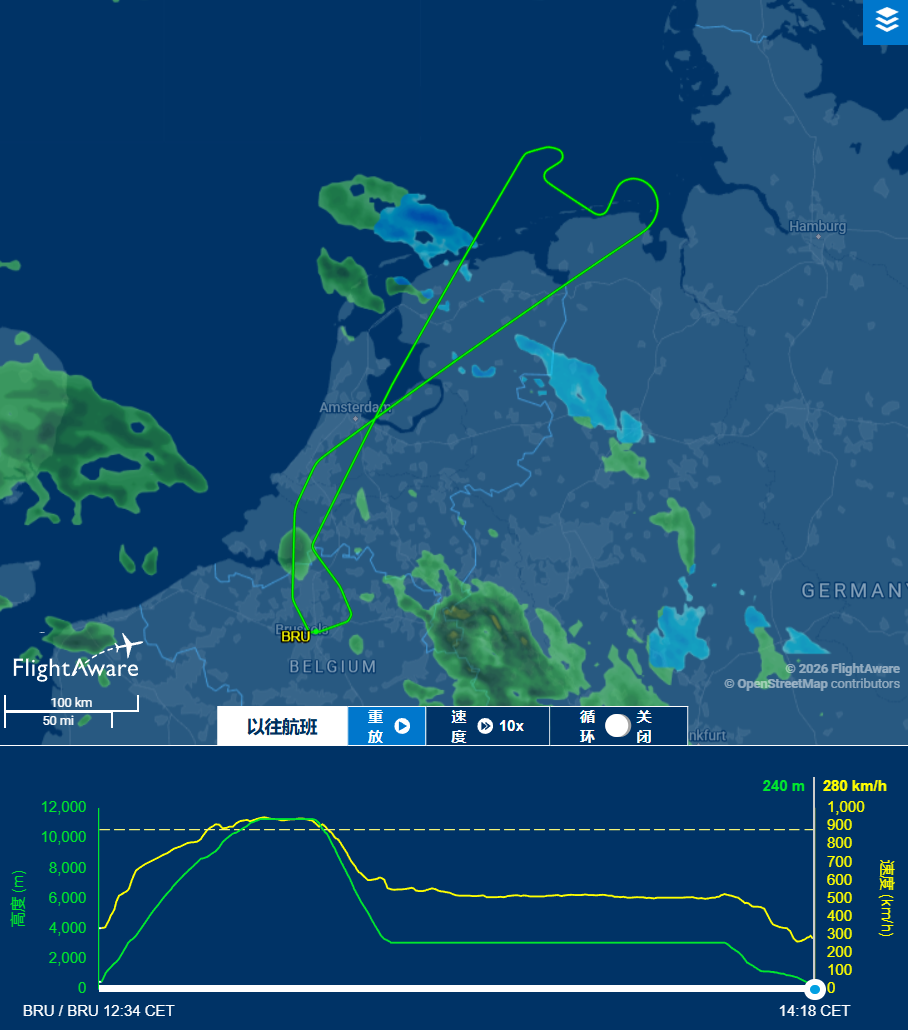 航班追踪网站FlightAware显示,海航HU492航班于当地时间2月6日12:28在布鲁塞尔起飞,随后飞行1小时50分后,备降返航至布鲁塞尔。