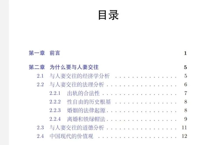 这 “ 论文 ” 的标题是人妻,前言聊的是生父,目录的编排甚至是论文形式的,尽显专业。