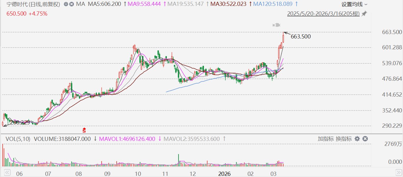 宁德时代A股上午盘中一度涨4%报413.17元,股价创2025年11月以来新高;H股一度涨近7%,报663.5港元,股价创上市新高。