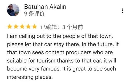 “我向那个小镇的居民呼吁,请让那辆车停在那里。将来,如果因为这辆车吸引到旅游方面的内容创作者,它一定会爆火。看到这样有趣的地方真是太棒了。”