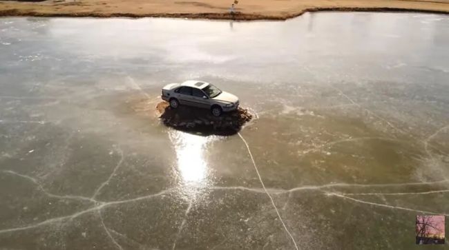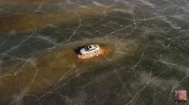 一辆车并不稀奇,但也不是啥时候,都能看见湖中间停着一辆车的......
