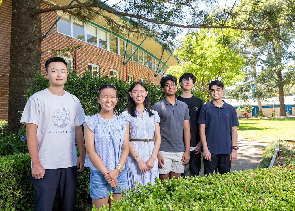 James Ruse部分满分学生,从左至右: Terry Chen, Nina Chen, Selina Ma, Nikil Andepalli, Peter Shan及Srihaas Komminni (图片来源:《悉尼晨锋报》)