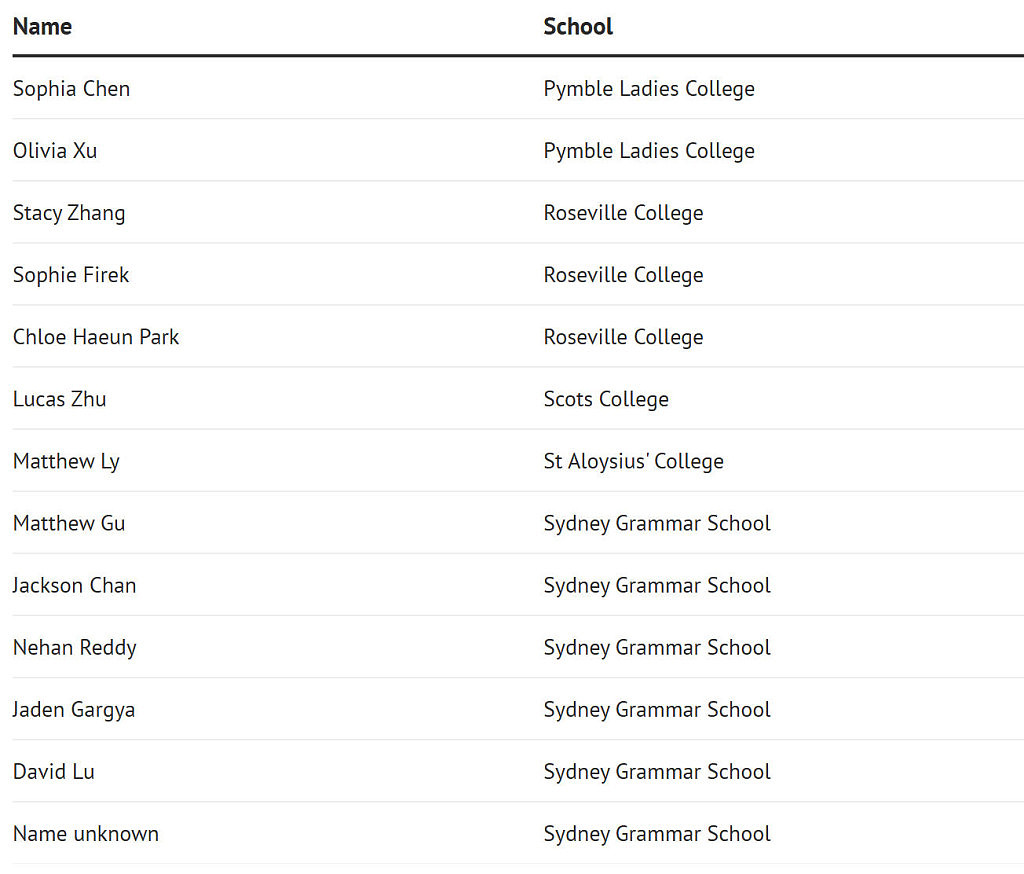 《悉尼晨锋报》公布了2025年“新州高考”(HSC)满分榜,在今年53名99.95分学生当中,有30多人为华裔。