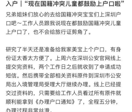 这位母亲在社交媒体上分享了自己的办理经验,她的孩子同样是国籍冲突,可现在不仅办理了旅行证,还成功办理了中国户口!