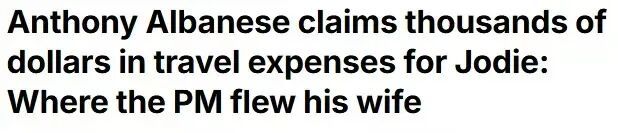 据《澳洲人报》查阅的IPEA记录,2022年9月,总理夫人Haydon往返墨尔本机票费用1305.64澳元,两人以受邀嘉宾身份出席AFL总决赛;2023年1月,总理以伴侣出行名义报销224.06澳元(堪培拉至墨尔本),两人一同出席澳网赛事;2024年9月,总理为Haydon飞往悉尼支付约848.28澳元机票费用。