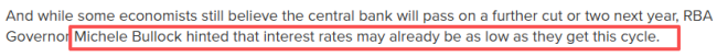 有一点需要注意,在澳联储的发布会上行长Michele Bullock给出了一个暗示: