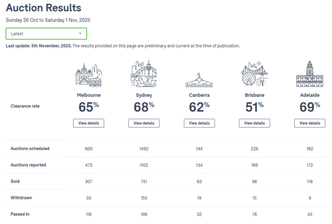 看看各地的具体水平吧:上周末的清盘率数据显示,澳洲各地清盘率没有一个超过70%,最低的布里斯班仅有51%!