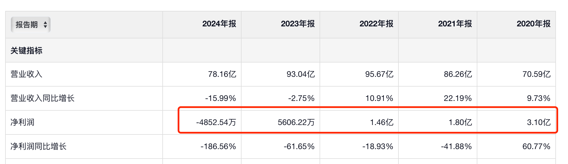 2024年,澳柯玛的净利润同样出现亏损4852.54万元,这也是自澳柯玛自2008年起,17年以来出现的首次亏损。横向对比显示,2020年开始,澳柯玛的净利润就开始进入下行通道。2020年至2024年,澳柯玛的净利润分别为3.1亿元、1.8亿元、1.46亿元、0.56亿元、-0.49亿元,逐年下滑。