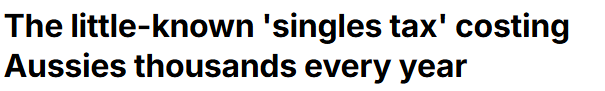 根据iSelect的研究,澳洲无子女的单身人士每年比无子女的双收入家庭多支付约7691澳元。