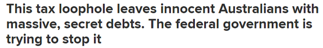 联邦政府或将关闭一个隐蔽且危害巨大的税务漏洞,该漏洞已导致大量陷入困境的澳洲民众在不知情的情况下背负隐秘债务。