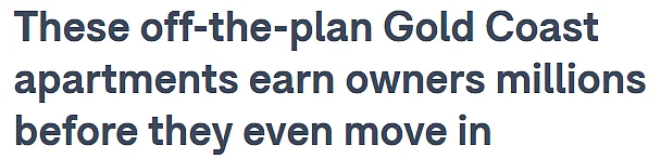 据Domain网站1月26日报道,黄金海岸海滨新竣工的公寓正在迎来“惊人”的价格飙升,有些房产的转售价甚至是当初楼花售价的两倍。