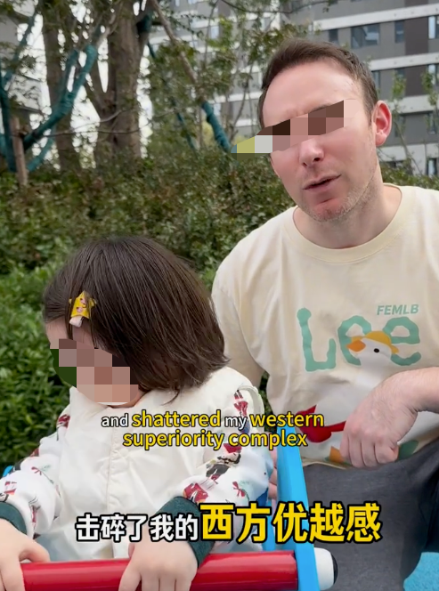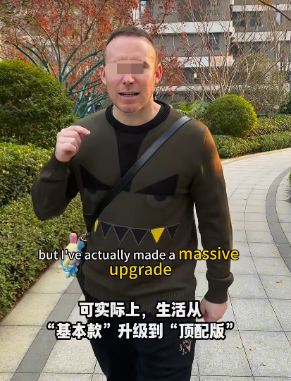 在另一段视频中,他在视频里提到,中国的生活经历,击碎了他过去的西方优越感!