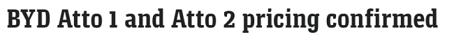 BYD Atto 1已确认将登陆澳洲,仅售23990澳元起(不含上路费用),上路价约26000澳元。此价格对应的是电池容量相对较小、动力配置较为基础的车款。