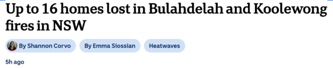 与布拉赫德拉火情几乎同步,中央海岸的库勒翁(Koolewong)火势于今日下午升级为紧急级别。