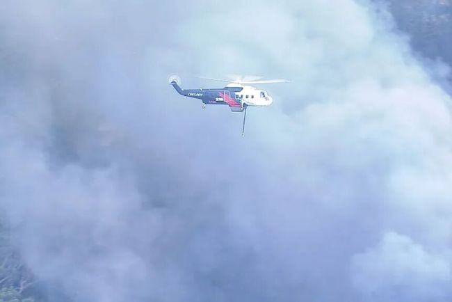 航空救援同样投入库勒翁火线,多架消防飞机支援地面团队,努力压制火势。