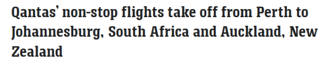 他说:“今天飞往约翰内斯堡的首航几乎座无虚席,后续的预订情况也十分理想。这说明无论是在西澳与南非之间,还是在珀斯与奥克兰之间,旅客对直飞航班的需求都非常强劲。”
