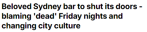 澳CBD人气酒吧关门!疫情后人气难回,周五夜场也遇冷