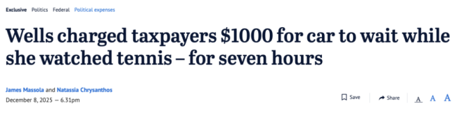 当财长Jim Chalmers宣布政府将停止电费补贴措施时,也被媒体问及Wells的开支问题。