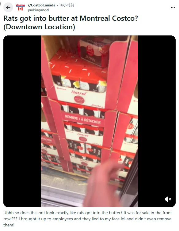 来源链接:https://www.reddit.com/r/CostcoCanada/comments/1qhiqwz/rats_got_into_butter_at_montreal_costco_downtown/