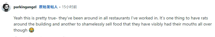 “确实如此——我工作过的所有餐厅都有老鼠。但餐厅里有老鼠是一回事,明目张胆地出售被老鼠啃过的食物又是另一回事了。”