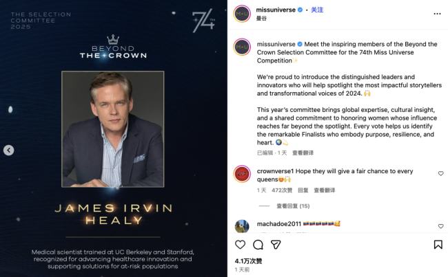 环球小姐组织主席劳尔·罗查也出面强调:“我不允许尊重女性与女性尊严等价值遭到践踏。”