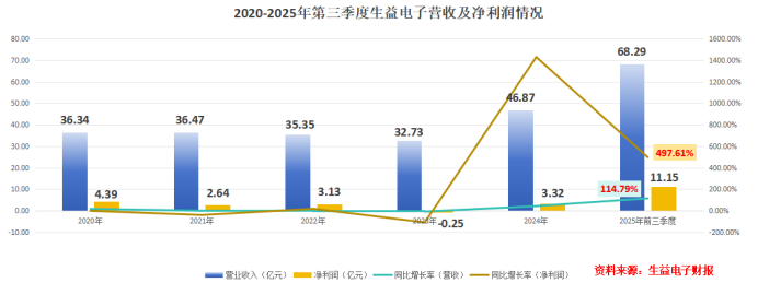 2025年前三季度,生益电子营收68.29亿元,同比增长114.79%,净利润更是同比激增497.61%,达到11.15亿元,相当于公司过去4年的净利润总和!