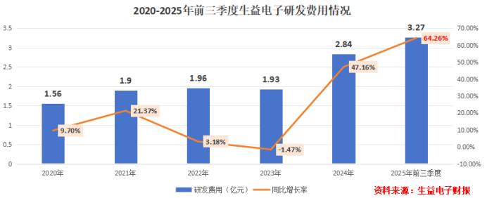 2025年前三季度,生益电子研发费用为3.27亿元,同比增长64.26%,超过去年全年的研发费用水平。