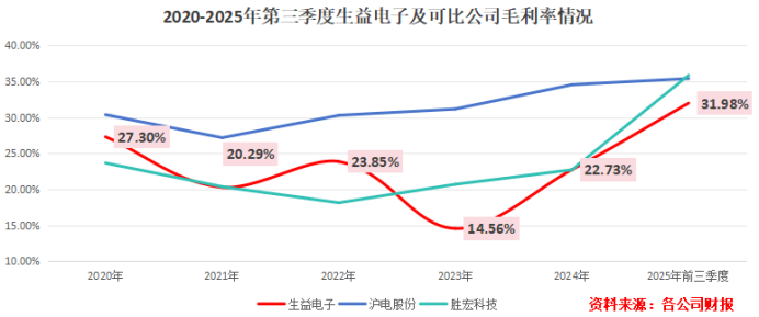 2025年,生益电子单季度毛利率首次冲进30%,前三季度总毛利率为31.98%。对比PCB行业头部公司,前三季度,沪电股份毛利率为35.4%,胜宏科技毛利率则为35.85%。