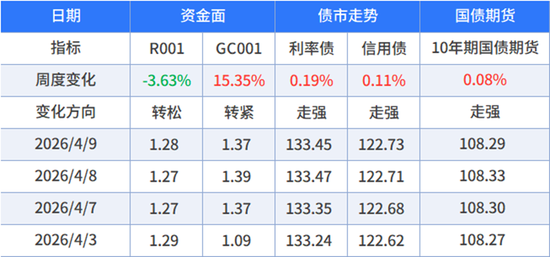 本周银行间资金面转松,交易所资金面转紧,利率债和信用债均走强,国债期货走强。
