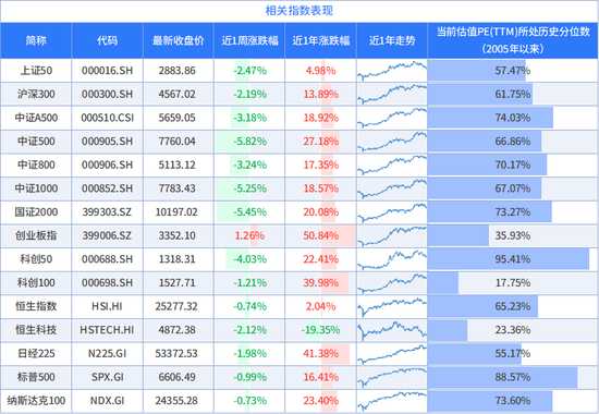 本周A股市场全面回调。宽基指数中,中证500指数、国证2000指数周度跌幅最深。