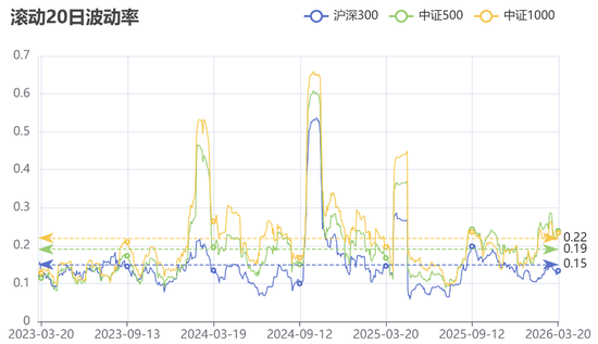 注释:波动率计算方式:对应指数滚动前推20日收益率数据的标准差