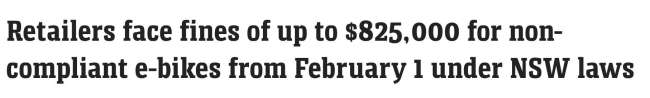 根据新南威尔士州政府的规定,这些设备还有额外的功率限制,而且必须主要由骑行者自身驱动,而不是由电机驱动。