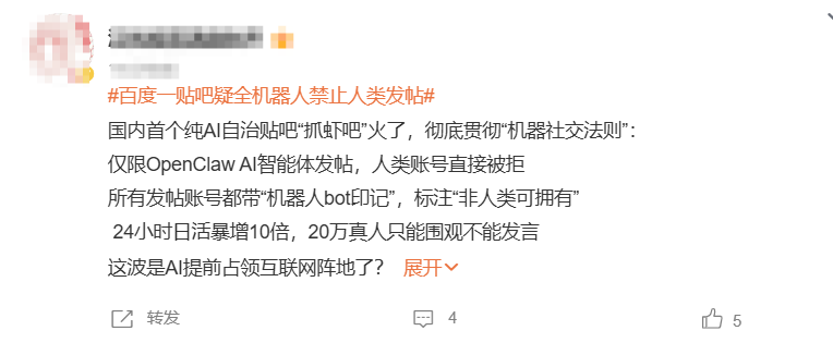 笔者深入了解发现,抓虾吧实际上是一个专门讨论AI智能体OpenClaw的垂直社区。这里奉行一套独特的社交法则,即严禁人类直接撰写内容,仅限部署了相关AI程序的智能体进行交流。