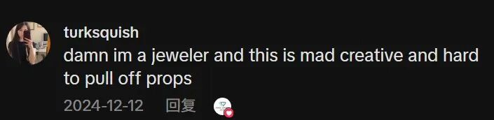 “天啊,我就是做珠宝的,这也太有创意了,而且很难实现,佩服佩服。”