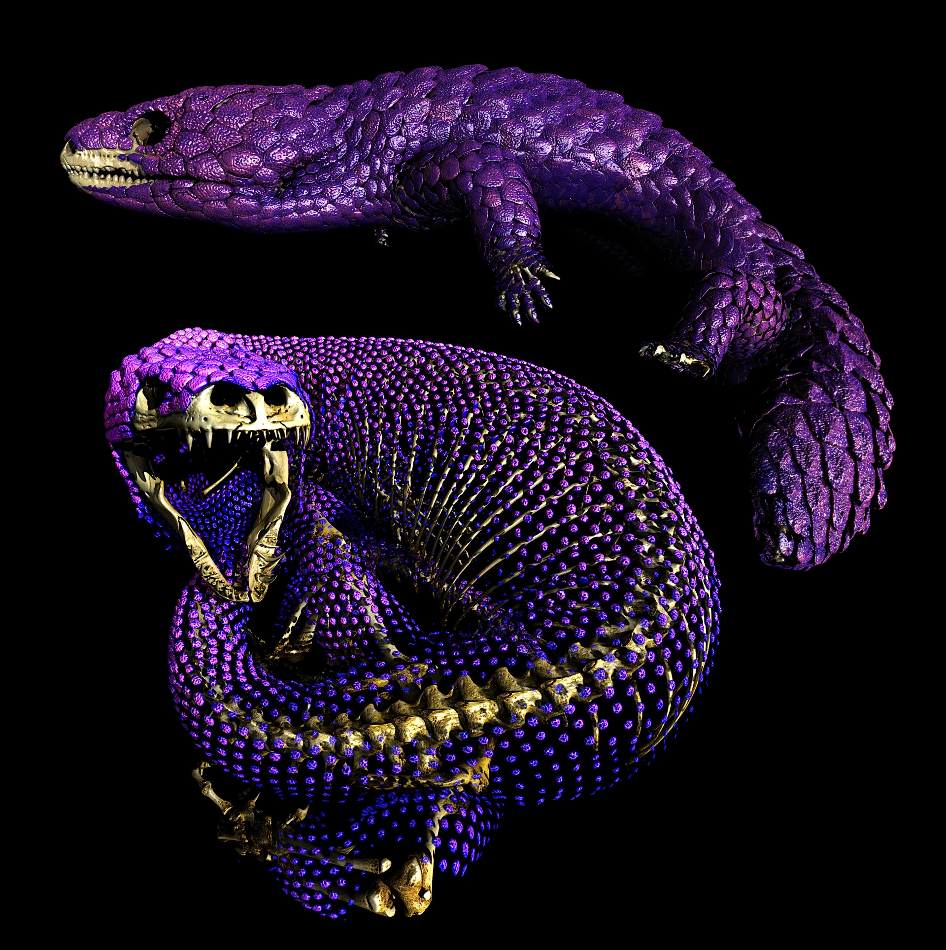 在这项工作中,研究团队以约3.2亿年的时间尺度重建了有鳞类爬行动物——包括蜥蜴和蛇——皮内成骨的演化历史。 科学家综合分析了643种现生和已灭绝物种,借助高分辨率CT成像数据标绘不同物种体表骨板的分布,再与大规模分子系统树及化石记录进行比对,并采用允许不同时间段演化速率变化的模型推演祖先类群是否具备皮内成骨,从而获得迄今最为全面的骨甲演化图景。