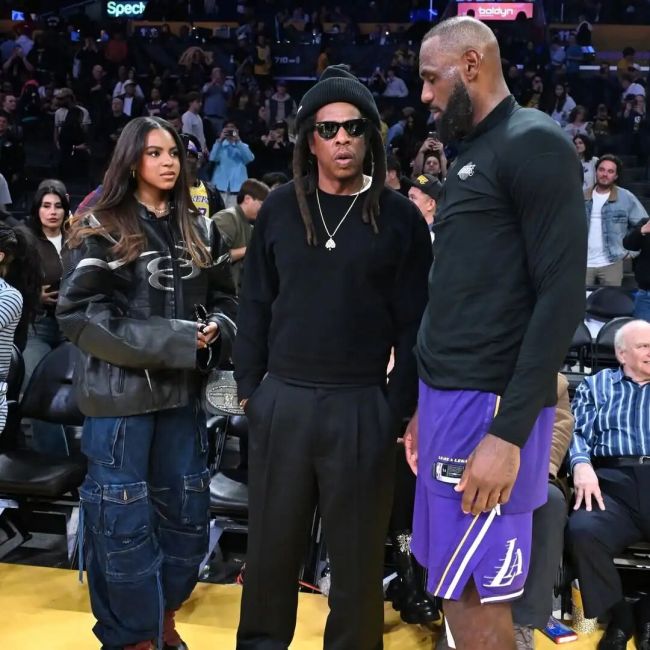 在洛杉矶湖人队对阵马刺队的比赛期间,布鲁·艾薇与父亲Jay-Z一同亮相,吸引了所有目光。这位碧昂丝13岁的“迷你版”不仅因其无可挑剔的穿搭——巴黎世家的外套、工装牛仔裤和那双让人想起多年前她母亲穿过的标志性运动鞋——成为焦点,更因为她与“女王B”(碧昂丝)之间无可否认的相似性。