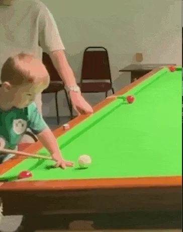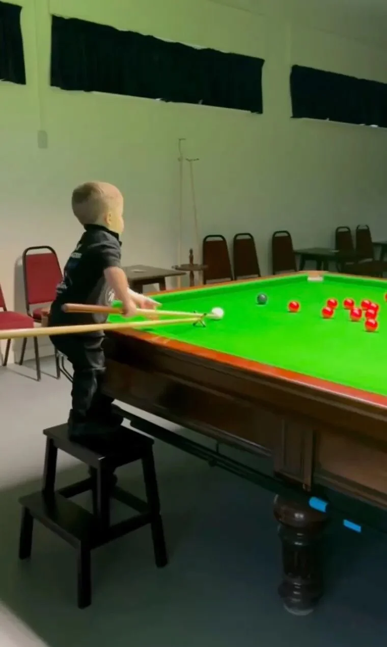 在英国曼彻斯特的一户人家里,小男孩裘德·欧文斯(Jude Owens)费力地爬上一个板凳,终于勉强够到了斯诺克台球桌。只见他架起球杆,一击出去,将摆好的球先后撞进球洞里……
