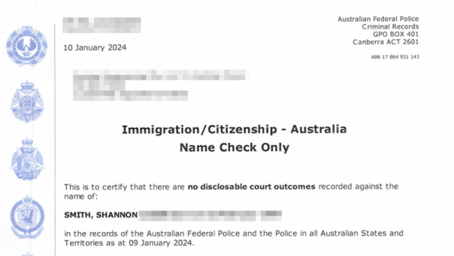 澳洲九号台12月9日报道,28岁的Shannon Smith原以为申请警方背景调查只是她迈向澳洲永久居留权过程中最简单的一步,没想到却收到澳洲联邦警察(AFP)发来的邮件。