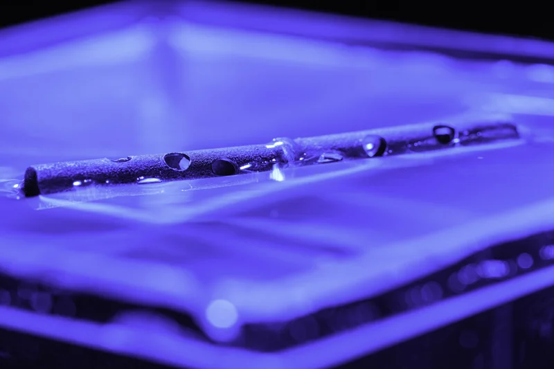 郭春雷团队的灵感正来源于这些生物。他们用激光在铝管内部蚀刻出微米级和纳米级的凹坑,创造出超疏水表面。这些微小的凹坑能够牢牢锁住空气,形成一层稳定的气膜,阻止水分子接触金属表面。