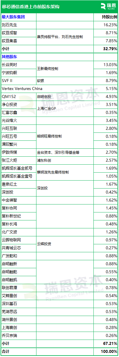 招股书显示,移芯通信在香港上市前的股东架构中,