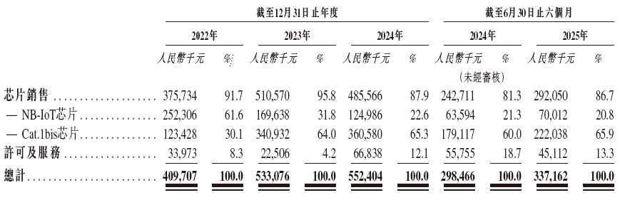 除芯片销售外,移芯通信还通过许可、服务以及向全球半导体领导者客户Q提供设计服务产生收入。