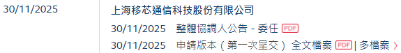 2025年11月30日,来自上海自由贸易试验区的上海移芯通信科技股份有限公司Shanghai Eigencomm Technologies Co., Ltd.(简称移芯通信)在港交所递交招股书,拟在香港主板挂牌上市。