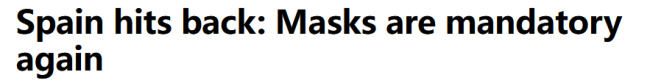 西班牙卫生部同样着手颁布口罩令,要求在医院、医疗中心和养老院尤其是在高风险地区,强制要求佩戴口罩,以保护“最脆弱的群体”。