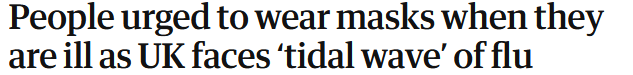 英国国家医疗服务体系(NHS)的一位负责人表示,英国正在经历一个“非常严重的流感疫情”,出现呼吸道症状的人“必须”在公共场合佩戴口罩。