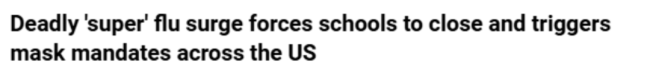 美国也出现了同样的情况,大批学校紧急停课,医生开始呼吁人们重新戴上口罩,防范传染病。