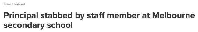 今天下午,墨尔本东南部一所学校的一名教职工涉嫌刺伤校长后被捕。